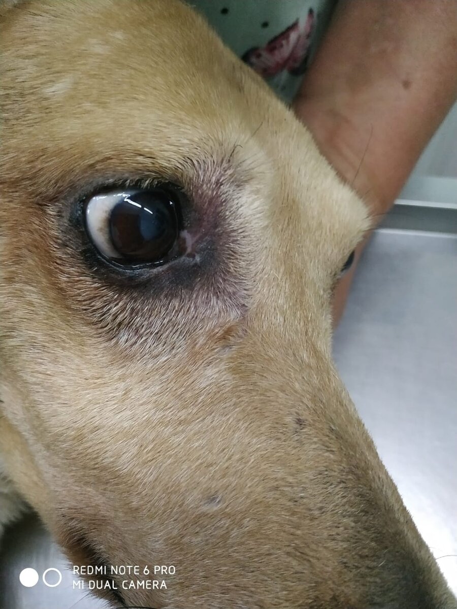 У собаки Чарочки из приюта после удаления новообразования верхнего века большого размера все очень даже отлично зажило. Девочка чувствует себя хорошо.