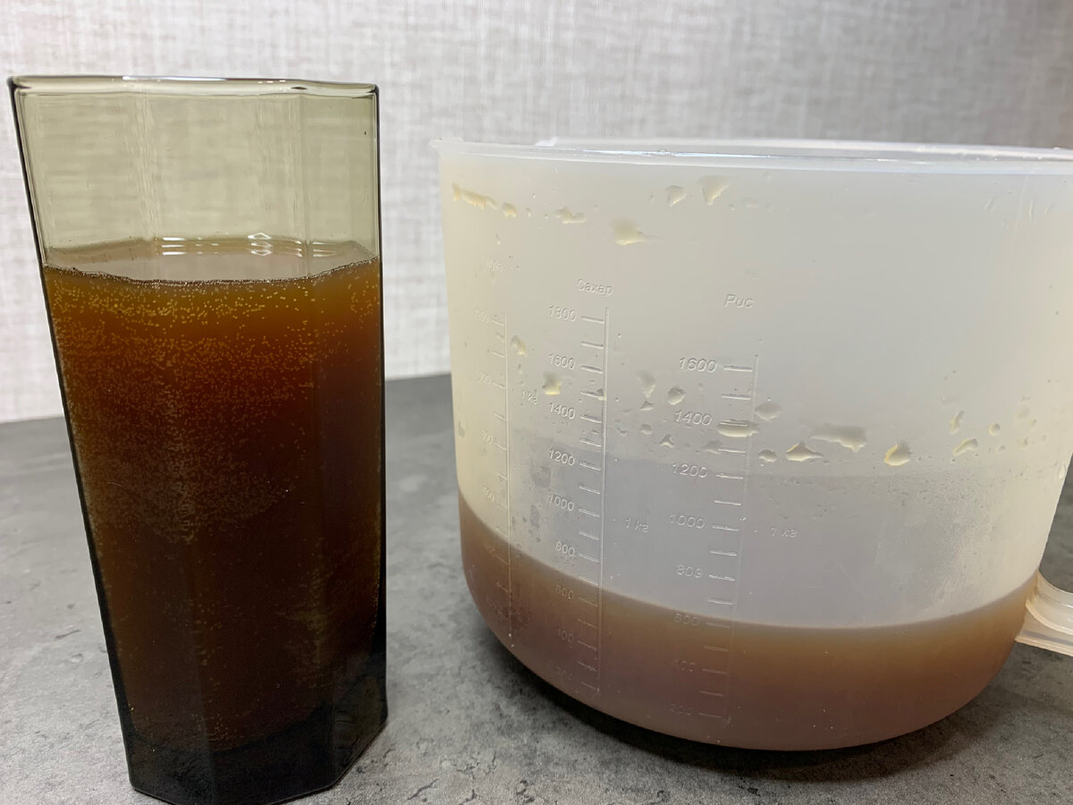 Купила ржаной солод для хлеба, а из него квас еще можно делать. Нашла самый распространенный рецепт. Очень много раз его повторяли и хвалили, даже расхваливали на разных сайтах. Я приготовила... Но... Расскажу в этой статье стоит ли готовить квас на ржаном солоде. Начну с того, как я готовила? 1,5 литра воды вскипятить, добавить 40 гр ферментированного ржаного солода и 100 гр сахара. Дать сахару раствориться. Отлить часть жидкости и остудить. Добавить 5 гр живых дрожжей. Хорошо перемешать. Когда основная жидкость остынет объединить с дрожжами и добавить 50 гр изюма. Накрыть кастрюлю марлей и оставить на 12 часов в тепле бродить. Через 12 часов процедить квас через сито с марлей, сложенной в 3-4 слоя. Поставить в холодильник на 1-2 суток для того, чтобы настоялся. Что получилось? Такой напиток действительно похож на квас. Он пахнет как квас. Цвет темный, насыщенный как у кваса. Но совершенно нет кислинки, которая присутствует в настоящем квасе. Эту кислинку дают молочно-кислые бактерии,