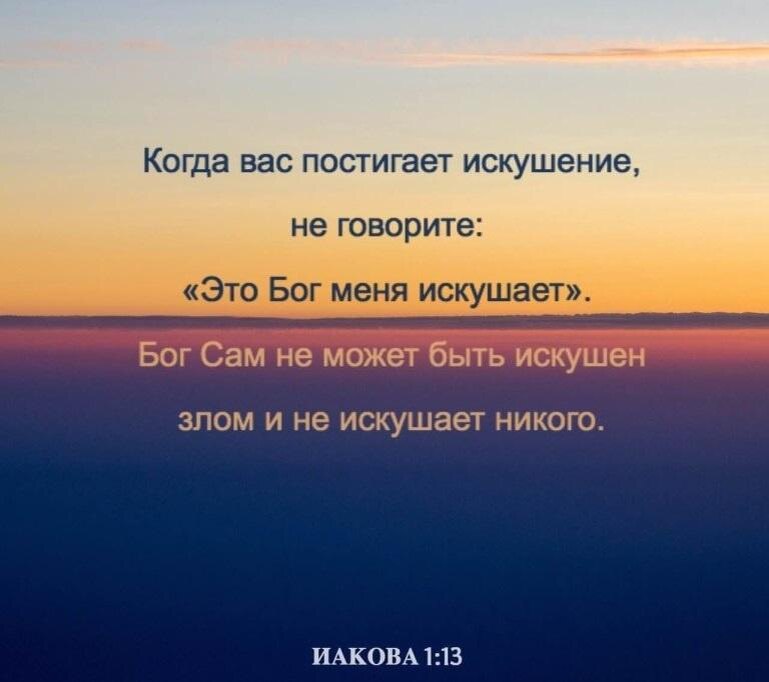 “В искушении никто не говори: «Бог меня искушает»; потому что Бог не искушается злом и Сам не искушает никого, но каждый искушается, увлекаясь и обольщаясь собственной похотью; похоть же, зачав, рождает грех, а сделанный грех рождает смерть. Не обманывайтесь, братья мои возлюбленные!” (Иак. 1:13-16).