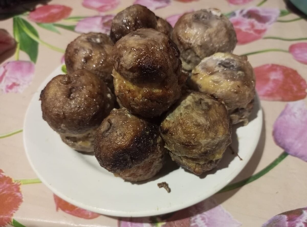 Ингредиенты: Шампиньоны средние или крупные - 1,5 кг Фарш куриный или свиной - 800 г Лук - 1 шт Сыр - 50-70 г Чеснок - 2 зубчика Паприка - 0,5 ч л Соль - по вкусу Перец чёрный молотый - по вкусу Майонез - 2 ст л Соевый соус - 2 ч л Приготовление: Лук и чеснок перебиваем блендером или натираем на мелкой тёрке и добавляем к фаршу. Сыр натираем на крупной тёрке и также добавляем к фаршу. Затем добавляем паприку, соль, перец и всё хорошо перемешиваем. У грибов удаляем ножку и начиняем грибы подготовленным фаршем. Соединяем по 2 шляпки между собой и насаживаем на шампур. Майонез смешиваем с соевым соусом и промазываем наши бургеры. Жарим на углях до золотистой корочки (жар должен быть не сильным). Бургеры готовы! Подавать можно с картофельным пюре. Приятного аппетита! Не забываем подписаться и поставить лайк! У меня ещё много вкусных рецептов!