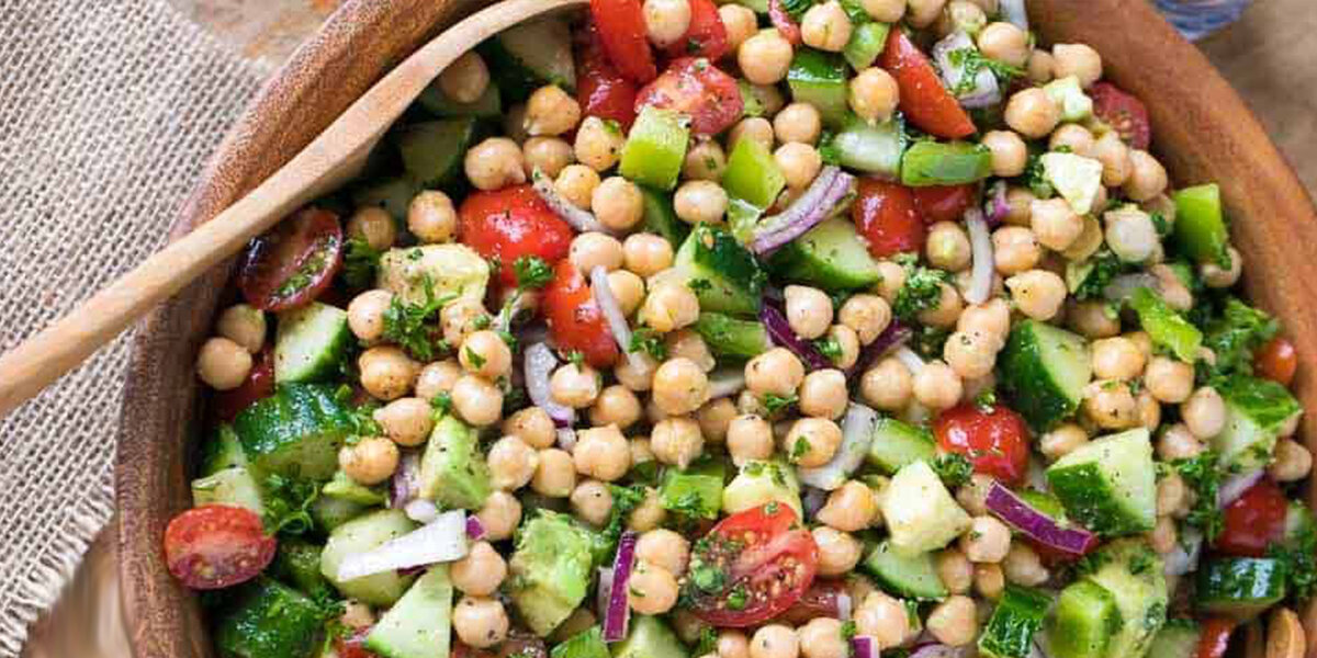 Салат из нута сочетает в себе все мои любимые свежие овощи в одной ложке. Нут сочетается с сочными помидорами, хрустящими огурцами и нежным авокадо в легкой домашней заправке с лимонным соком. Этот простой рецепт салата станет идеальным гарниром практически к любому блюду или отличному обеду. Добавьте немного белка, например куриные грудки на гриле , чтобы сделать ужин сытным! Этот салат прекрасная альтернатива греческого салата . А заправка свежая и полезная которая придает глубину салату. Салат из нута сохраняет свежесть в холодильнике в течение нескольких дней. Я люблю свежие летние салаты , наполненные огромным разнообразием продуктов. Совет: Используйте молодые огурцы, так как у них хорошая тонкая кожица и их не нужно очищать. Вы можете использовать помидоры черри или обычные помидоры нарезанные кубиками. Болгарский перец добавляет хруста и вкуса, используйте красный или желтый болгарский перец для более сладкого вкусаили обычный зеленый для пряного вкуса. Авокадо придает кремообр