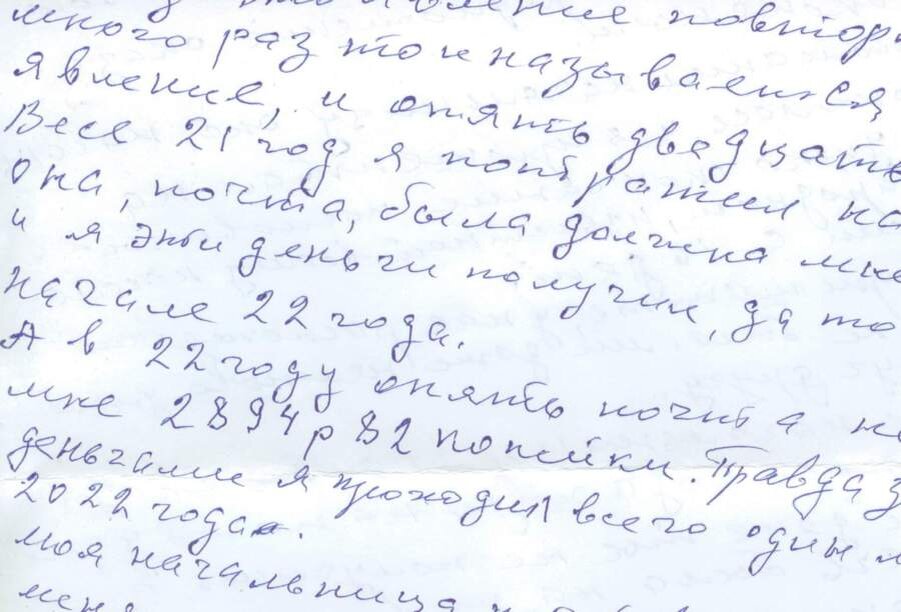 Случается, что почта забирает деньги у подписчиков и обещает доставлять корреспонденцию, но потом ни денег, ни газет, ни журналов. И когда это явление повторяется много раз, то называется оно - "и опять двадцать пять". Весь 2021-й год я потратил на почту. Она мне должна была 800 рублей, и я эти деньги выходил, получил, да только в начале 2022-го. А в этом году опять почта не отдаёт мне 2 894 рубля и 82 копейки. Правда, за этими деньгами я приходил всего один месяц - июнь. Моя почтовая начальница успокаивает меня, говорит: - Ну, куда же вы спешите? Придёт ответ на вашу просьбу, пришлют деньги, и вопрос будет решён. Да только жизнь требует денег каждый день и не хочет ждать! Я пошёл в администрацию и горсовет, чтобы помогли, ведь почта не отдаёт деньги. И слышу в ответ: - А она нам не подчиняется. Поэтому зря вы пришли в администрацию. Но время идёт, и моя почтовая начальница стала нервничать, говорит: что ты, Волков, пристал как банный... Это меня немного ошарашило. Да и подруга