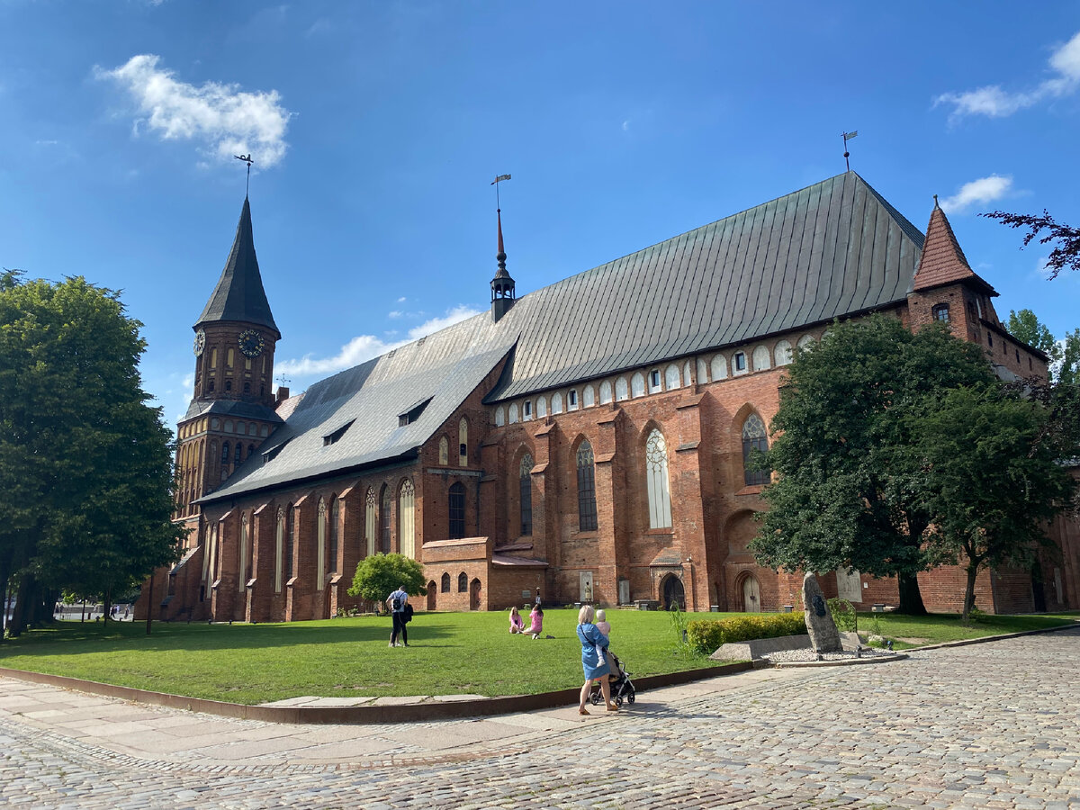 Далее идём на остров через медовый мост. Здесь две достопримечательности - красивый парк и недействующий Кафедральный собор (1380 г постройки) и очень много людей. Ещё это место называют островом Канта. Именно здесь расположена могила знаменитого философа (1724-1804) и его музей.
