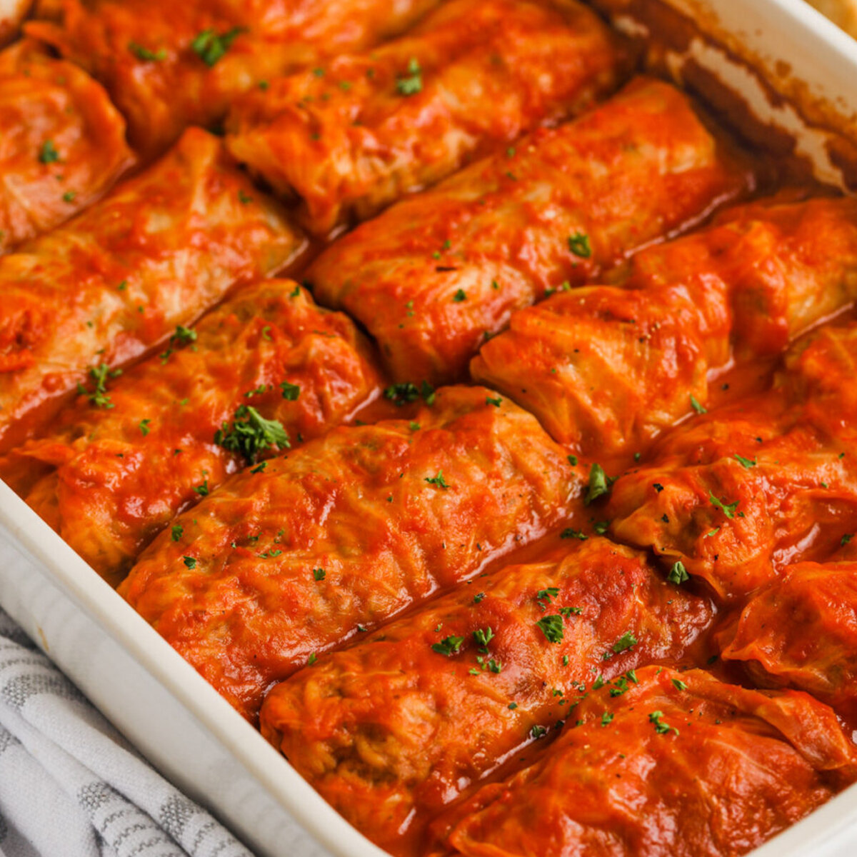 Домашние голубцы получаются очень вкусными и сытными. С мясом, рисом, соусом и капустой они такие же, как бабушка готовила! Это блюдо можно разогревать и замораживать. Время подготовки 45 минут Время приготовления 1 час 15 минут Общее время 2 часа Капуста Я использую кочан обычной зеленой капусты и отвариваю ее в большой кастрюле с водой, чтобы она стала мягкой. ЛАЙФХАК: Многие люди замораживают весь кочан капусты и размораживают его, чтобы исключить стадию варки, так тоже можно , но я считаю, что таким образом капуста не такая нежная. Мясная смесь Моя бабушка всегда использовала свинину в своих голубцах, но я использую смесь говядины и свинины, мне кажется, что так вкуснее. Вы можете использовать только один или другой (или любой мясной фарш). А также вареный длиннозернистый белый рис добавляю к мясу вместе с яйцом, чтобы мясо склеилось. Соус Большинство рецептов голубцов покрыты томатным соусом или томатным соком. Я люблю добавить томатного сока и томатной пасты. Эта смесь смягчает с