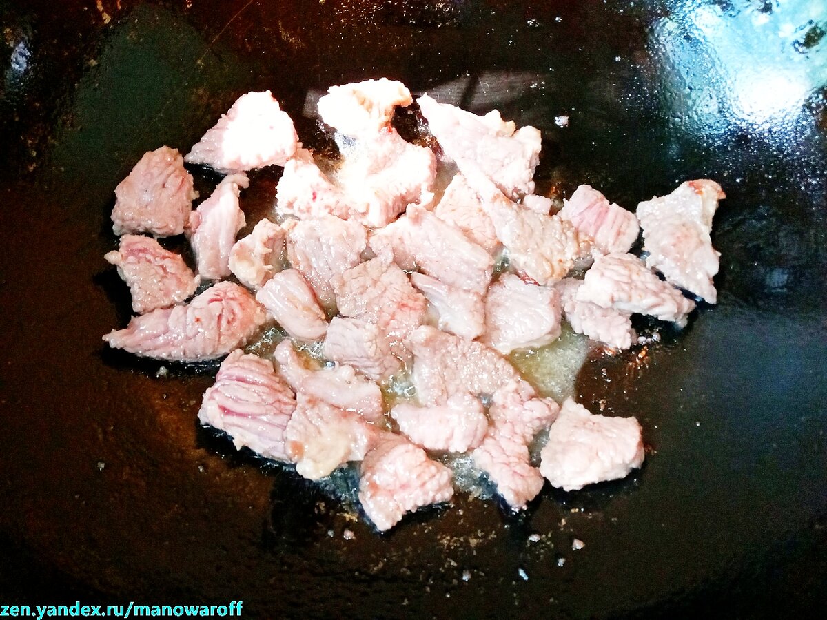 После приготовления некоторых блюд у меня в холодильнике остались кое-какие ингредиенты, так что решил пустить их в дело, пока они не испортились. А что проще всего приготовить из мяса и овощей? Правильно, стир-фрай. Так что сейчас его и сбацаем. Для приготовления двух порций нам понадобится: Все твердые ингредиенты нарезаем брусочками. В воке разогреваем растительное масло и на максимальном огне обжариваем говядину до готовности (пара-тройка минут), не забывая постоянно помешивать. Мясо куда-нибудь перекладываем, при необходимости добавляем масло, и обжариваем баклажан в течение двух-трех минут, постоянно перемешивая. Баклажаны перекладываем к мясу. На очереди морковь. С ней поступаем аналогично... ...после чего убираем ее к мясу с баклажаном. Далее аналогичным образом обжариваем болгарский перец... ...после чего добавляем к нему мясо с баклажаном и морковью. Огонь убавляем до среднего и готовим в течение минуты, постоянно помешивая, чтобы все ингредиенты прогрелись. Добавляем уксус,