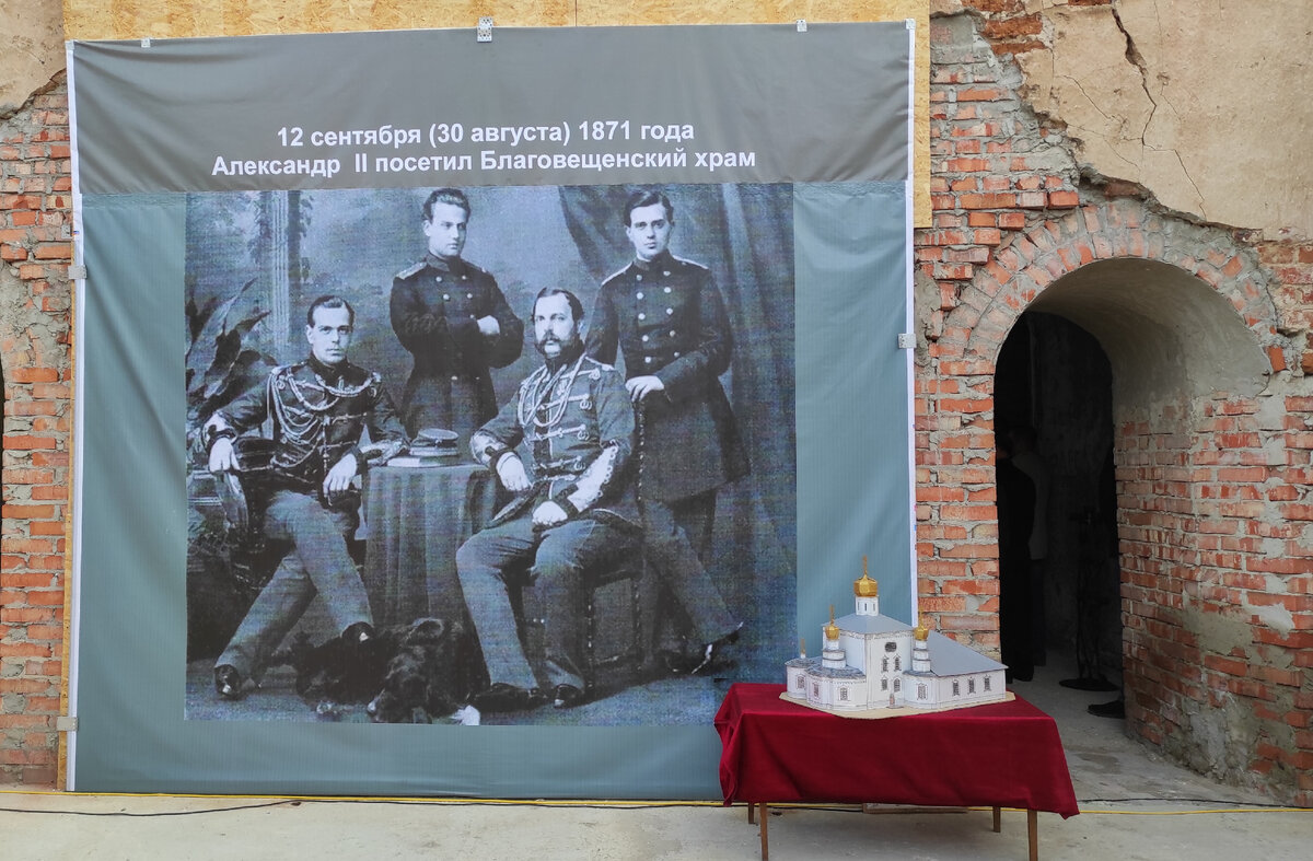 В 1871 году 12 сентября (30 августа по старому летоисчислению) в истории Сызранского уезда произошло величайшее событие. В предместье Сызрани, на Кашпирских горах, обычную приходскую церковь во имя Благовещения Пресвятой Богородицы посетил Царь-Освободитель Александр II. Его величество в сопровождении сыновей: Наследника Цесаревича Александра Александровича (будущего Императора Александра III) и Великого князя Владимира Александровича путешествовал по Волге (проездом на Кавказ и в Крым) на пароходах общества «Кавказ и Меркурий». Во время этого плавания августейшие путешественники побывали во многих губернских городах, расположенных на Великой русской реке. В день своего и наследника тезоименитства государь со свитой остановились на Кашпире и в приходской Благовещенской церкви, построенной в 1728 году при монастыре, основанном стольником Семёном Константиновичем Дмитриевым, «слушали божественную литургию. Великие князья приняли участие в пение на клиросе. В память посещения церкви Высо