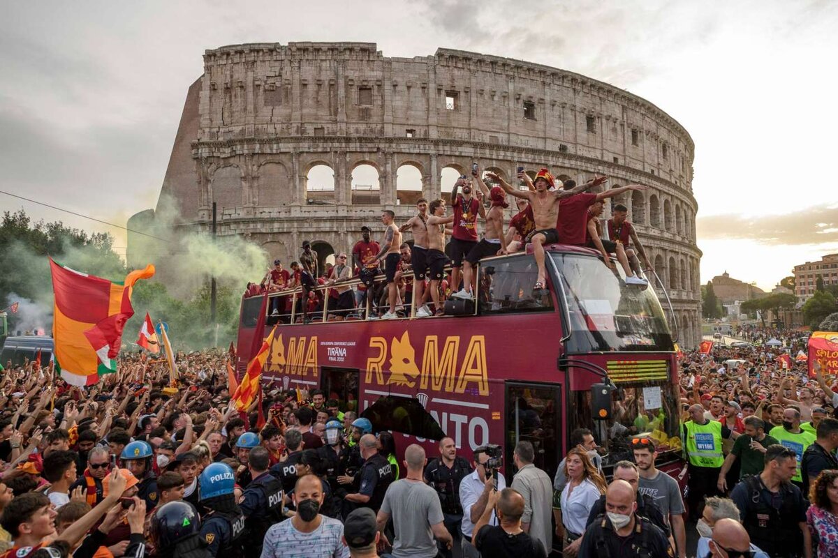 «Рома» в мае выиграла первый турнир Лиги конференций и грандиозно отпраздновала это событие. Выигрыш еврокубка впервые за 61 год отмечался прямо напротив Колизея. Помните, да? А в начале июля «Рома» привезла трофей домой к своему фанату. Его зовут Джорджо, ему 96 лет. Фактически он старше самого клуба – «Роме» в июне исполнилось 95. Джорджо – самый пожилой ее фанат и владелец абонемента. Трофей привез гендиректор Тьяго Пинту. Вот как это выглядело: Джорджо рассказал Пинту, что он болеет за клуб со времен Мазетти и Амадеи. Двукратный чемпион мира Гвидо Мазетти был вратарем и выступал за «Рому» 13 лет с 1930-го, а потом ее тренировал. Амедео Амадеи играл за «Рому» 12 лет с 1936-го, а в Серии А забивал даже в 15 лет. Трофей Лиги конференций пробыл у Джорджо дома несколько часов. А на память остались фото:
