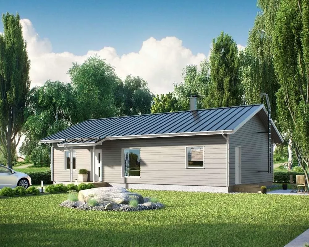 Просторный одноэтажный каркасный дом для семьи с детьми. Общая площадь: 101 м2