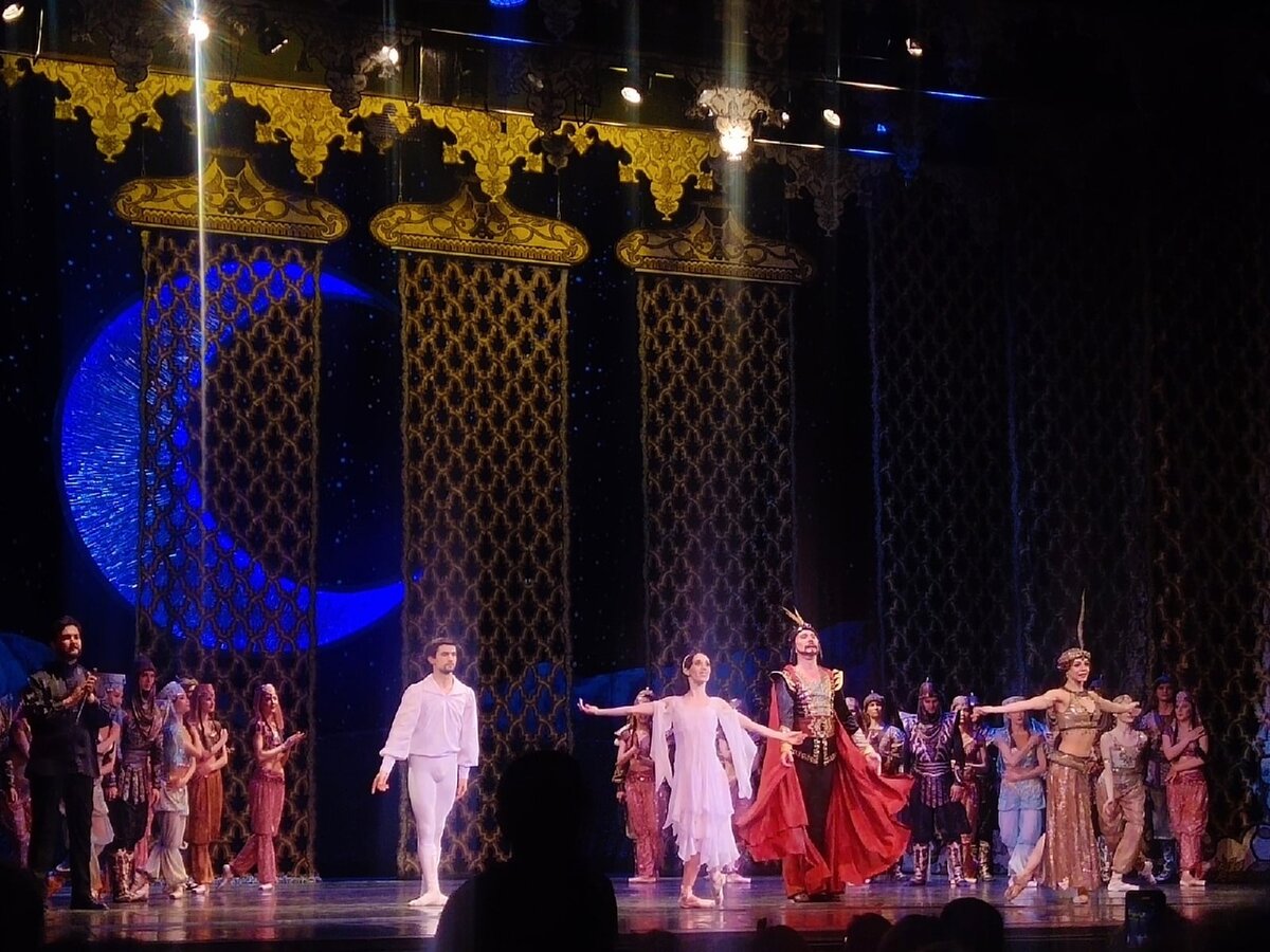 На третий день «XXI Летних балетных сезонов» я открыл их для себя, равно как и «Бахчисарайский фонтан» Марийского театра посмотрел в первый раз, хотя с репертуаром этого замечательного коллектива знаком не понаслышке и даже бывал не раз во впечатляющем театре Йошкар-Олы. И эта работа позапрошлого года Худрука театра Константина Иванова вполне достойное пополнение афиши, при этом от драмбалета, а начало его эпохи в 1934 году этот балет как раз и возвестил, ни осталось ничего – это чисто танцевальный спектакль. Да даже более того: первый акт — это вообще практически один большой дивертисмент, этакое Гран-па из смеси нархара и классики в хорошей пропорции. И я к сему формату весьма расположен, к тому же не поскупились на богатые костюмы, хотя вот декорации первой части я не отнесу к удачным решениям. Второй акт идёт в восточном колорите, здесь также на костюмах не экономили, да и декорации подтянулись, а фонтан, вынесенный в название и появляющийся в финале, натурально с льющейся водой. П