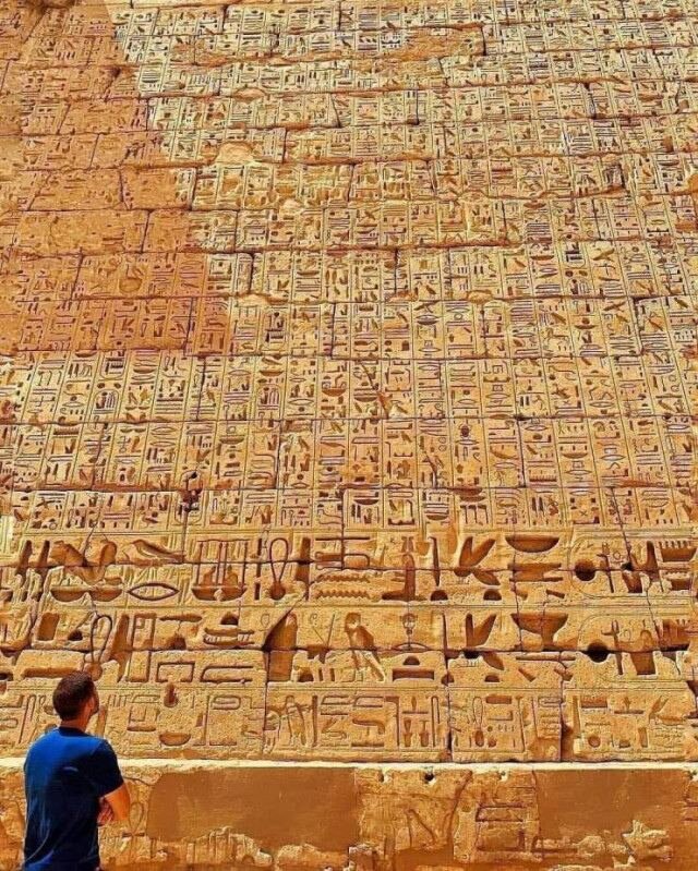 Иероглифы на стене храма Хабу в Луксоре, Египет