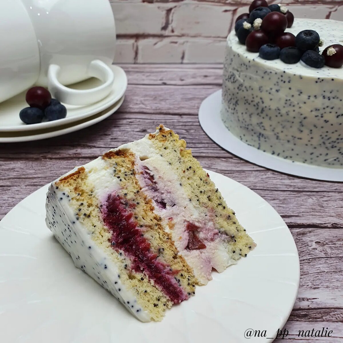 Диетический МАКОВЫЙ ТОРТ с чизкейком внутри и вишнёвым конфи