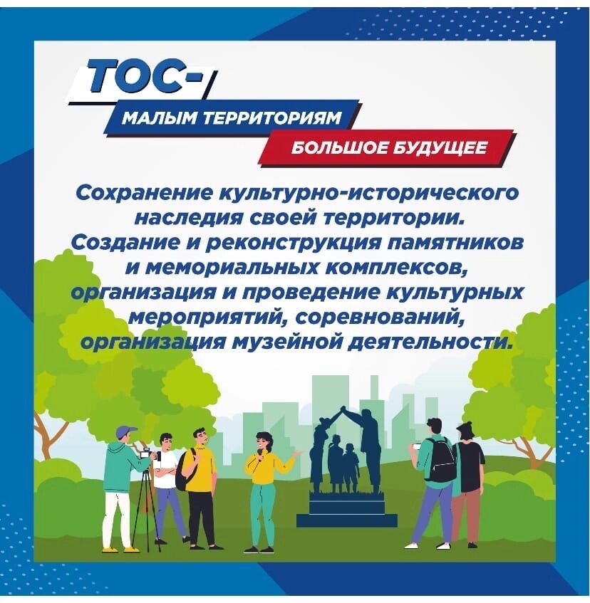 Территориальное общественное самоуправление — это самоорганизация граждан по месту их жительства на части территории поселения. Территориальное общественное самоуправления в России имеет глубокие исторические корни. Одним из заметных его проявлений являлись сельские общины и общества. Можно сказать, что до 1917 г. Россия уже имела практику использования, при решении местных вопросов, территориальных институтов общественного самоуправления. ТОС является эффективной формой реализации собственных инициатив, направленных на улучшение качества жизни людей на своей территории. Основная задача ТОС - способствовать объединению жителей, чтобы организовать и вовлечь в то или иное полезное мероприятие как можно больше граждан. Развитие ТОС является важной стратегической задачей для населенных пунктов на ближайшую перспективу. Сегодня именно инициативные группы жителей, такие как ТОСы, формируют основной объем наказов по благоустройству. В том числе, многие ТОСы привлекают на свои территории