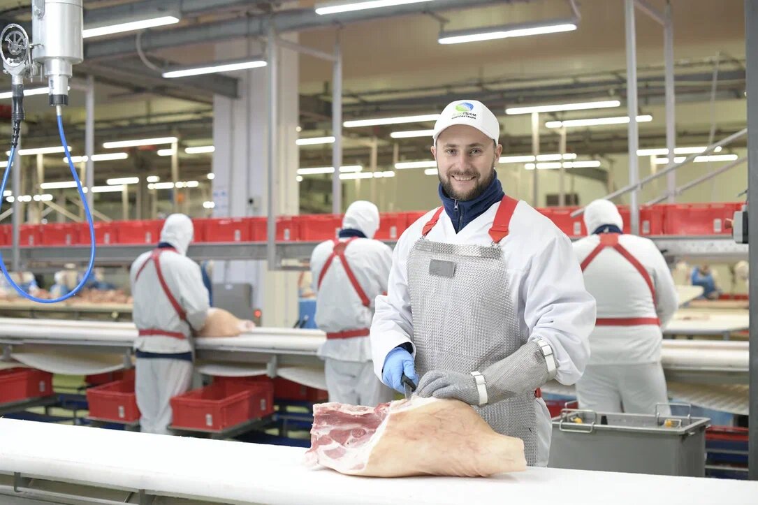 Обвальщик мяса – одна из основных профессий на мясокомбинате. Квалифицированные и опытные обвальщики очень востребованы и могут претендовать на хорошую зарплату. Мы же готовы взять сотрудника без опыта и обучить его работе. Качество и сроки хранения поступающей на прилавки продукции, как мясной, так и колбасной, напрямую зависит от качества работы обвальщика. Задача обвальщика заключается в отделении мяса от костей. Опытный работник делает это быстро и качественно. Умело используя специальные ножи, он разделяет тушу на части, аккуратно вырезая кости и не делая лишних надрезов. При разделке контакт с мясом должен быть минимальным. Профессия обвальщика – работа для настоящих мужчин. Здесь нужна физическая сила, точность, опыт. Важно, чтобы движения были четко отработанными и доведенными до автоматизма. В таком случае обвальщик затрачивает меньше усилий и времени на обработку одной туши. Кроме того, знание анатомии – строения скелета, мышечной ткани и сухожилий не менее важно и позволяет