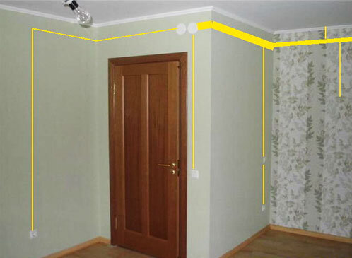 В отличие от проекта электропроводки, план прохождения проводки в стенах помещений, потолочных перекрытиях и в полу можно нанести по завершении монтажных работ на сфотографированные участки помещений, в которых осуществлялась прокладка. Как видно на снимке, разветвительные коробки, розетки и выключатели располагаются в доступных для обслуживания местах.