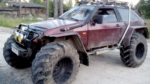 Многие российские мастера, видимо, в силу специфических дорожных, внедорожных и климатических условий нашей страны, испытывают тягу к созданию могучих внедорожников с огромными колёсами. Автомобили такого типа, обычно называемые болотоходами , могут использоваться не только на болотах, но и в других условиях: на размокших «грунтовках», при форсировании мелких водоёмов, передвижении по пересечённой местности и др. Обзор самодельного вездехода из "ВАЗ 2108" Как рассказывает создатель этого транспортного средства, когда-то он продал свою довольно потрёпанную «восьмёрку» своему товарищу для того, чтобы поучился ездить на автомобиле, который «если что, не жалко». За полтора года эксплуатации довольно выносливая отечественная машина превратилась буквально в хлам на колёсах, после оказалась брошена у гаража конструктора. Автомобиль 1991 года выпуска к упомянутым событиям, произошедшим в 2013 году, имел довольно плачевное состояние. Наш соотечественник, будучи мастером на все руки, решил собра