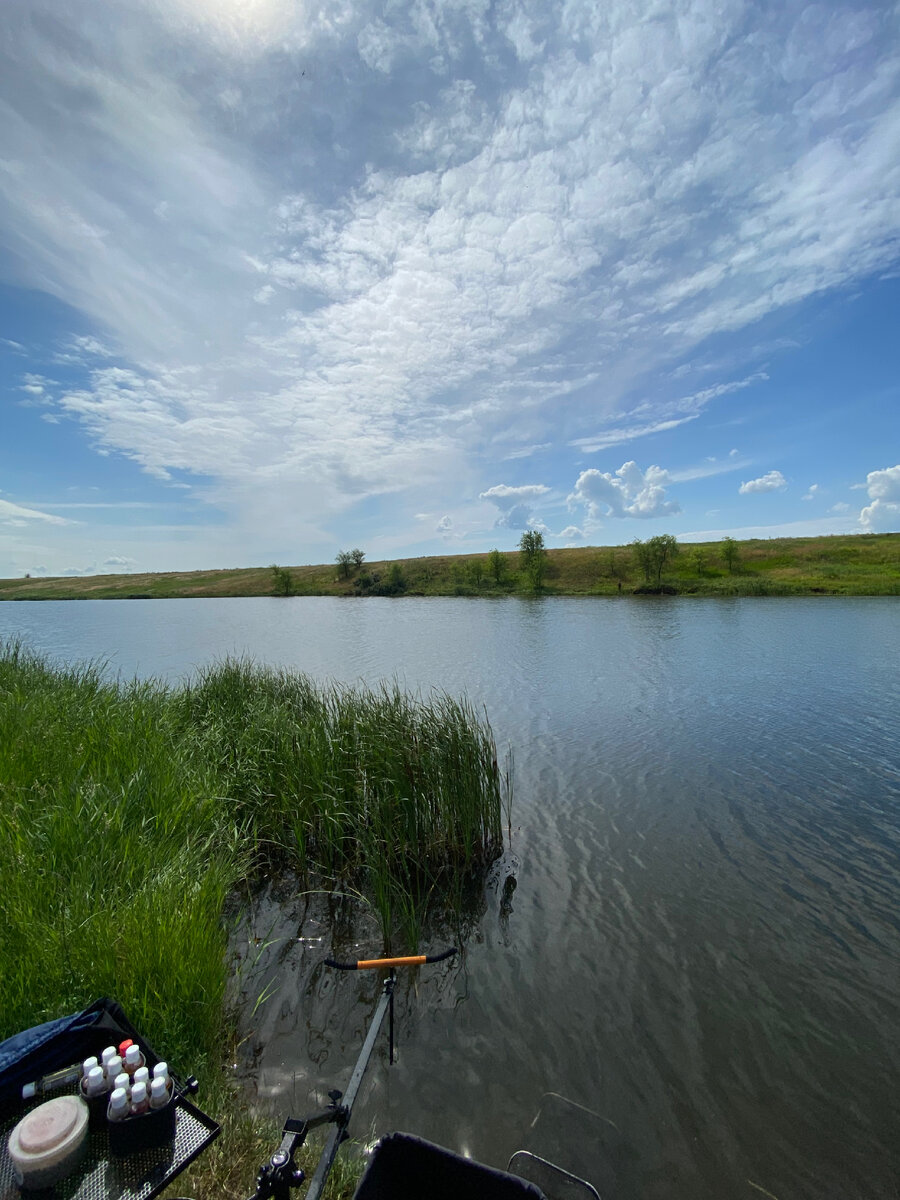 Разведка новых мест. Пока на реках стоит аномально, для июля, высокий уровень воды и с рыбой не понятно что происходит. Решил разведать небольшой дачный пруд, не далеко от города. По приезду, хотел по быстрому изучить рельеф с помощью эхолота, но забыл его зарядить и он оказался полностью разряженным. Пришлось «пробежаться» по берегу вооружившись одним лишь только маркерным грузом. По всему водоему глубина оказалась в районе 4 метров, без каких либо ямок. По этому выбрал место с самым удобным подъездом, в районе дамбы. Более детально изучив выбранное место, получилось 2 интересных дистанции: 25 метров, небольшая бровка 14 метров, переход на ракушку или камень Со старта закормил обе точки и ловить начал с ближней, на мой взгляд она более перспективная. С первых забросов рыба плотно стояла на точке, но правда совершенно не та рыба ради которой я приехал. Стая уклейки стояла столбом, практически до самого дна. И начались «танцы с бубном» чтобы прогнать эту назойливую рыбку с точки. Д
