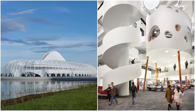 Студенческий городок (он же кампус) – это особая среда со своей инфраструктурой, призванной обеспечить студентов не только учебными корпусами, лабораториями и мастерскими, но и местом для проживания, общения, развития и досуга. Зачастую университетская среда превращается в удивительные социокультурные пространства, привлекающие неординарной архитектурой, особенной организацией образовательных процессов и жизни вне стен учебных корпусов. Чтобы убедиться в том, что кампусы университетов могут опережать время, мы подобрали 6 инновационных студенческих пространств, в которых явно просматриваются черты городов-будущего, где царят высокие технологии.