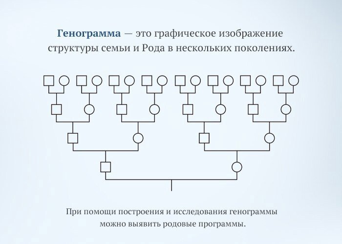 🌳 Генограмма — это графическое изображение структуры семьи и Рода в нескольких поколениях. При помощи построения и исследования генограммы можно выявить родовые программы. Родовые программы — это повторяющиеся в поколениях модели поведения и мышления, психологические установки, которые сложились в Роду. Вы находитесь посередине Линии жизни. Ваши предки олицетворяют ваше прошлое, ваши потомки — будущее. Ваше прошлое влияет на ваше настоящее. Из настоящего вы формируете будущее. ☀ Чтобы приступить к построению генограммы, познакомьтесь с символикой и примерами построения генограмм (см. изображения) Для того чтобы составить генограмму и работать с ней, необходимо собрать информацию о ваших родственниках. В этом вам поможет анкета с вопросами. Если у вас мало информации, обратитесь за помощью к вашим родителям, дедушкам и бабушкам, другим родичам. ❓Вопросы: ✔ Возраст на настоящий момент всех членов семьи: даты рождения и смерти, причина смерти родственников (если умерли от болезни, то
