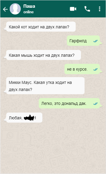 Доброе утро ! Новое утро, а значит пора задать настроение и тон на весь день. Спасибо всем кто подписывается, растем с вами. Рассказывайте как проводите лето! У меня например погода из крайности в крайность сначала жарит безумно, потом дождь, следом опять жара и так весь месяц. Пора приступать к получению настроения ! Что же там замазано, видимо не узнаем. А из таких вопросов и ответов я бы тоже так подумал. А он ведь сразу понял о чем речь, я уверен. Но решил сделать вид что не понимает о чем речь ! Звучит как рабочая схема. А если серьезно, как это считается? Или это лишь маркетинговый ход ? Вообще не могу это прокомментировать как либо. Я слышал что с такими экспериментами надо быть аккуратнее. Это же все таки дети. Пора сделать важный выбор. Вы получаете способность летать, но теперь не можете ходить. Пишите что выбрали и почему, подписывайтесь, чтобы получать все лучшее первым! До новых встреч, не забывайте обо мне !)