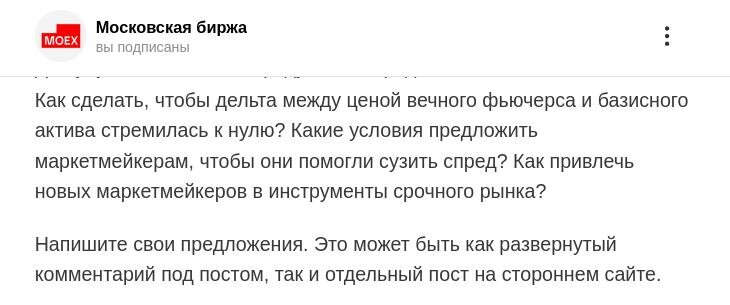 Ответы и предложения МосБирже на вопросы по вечным фьючерсам
