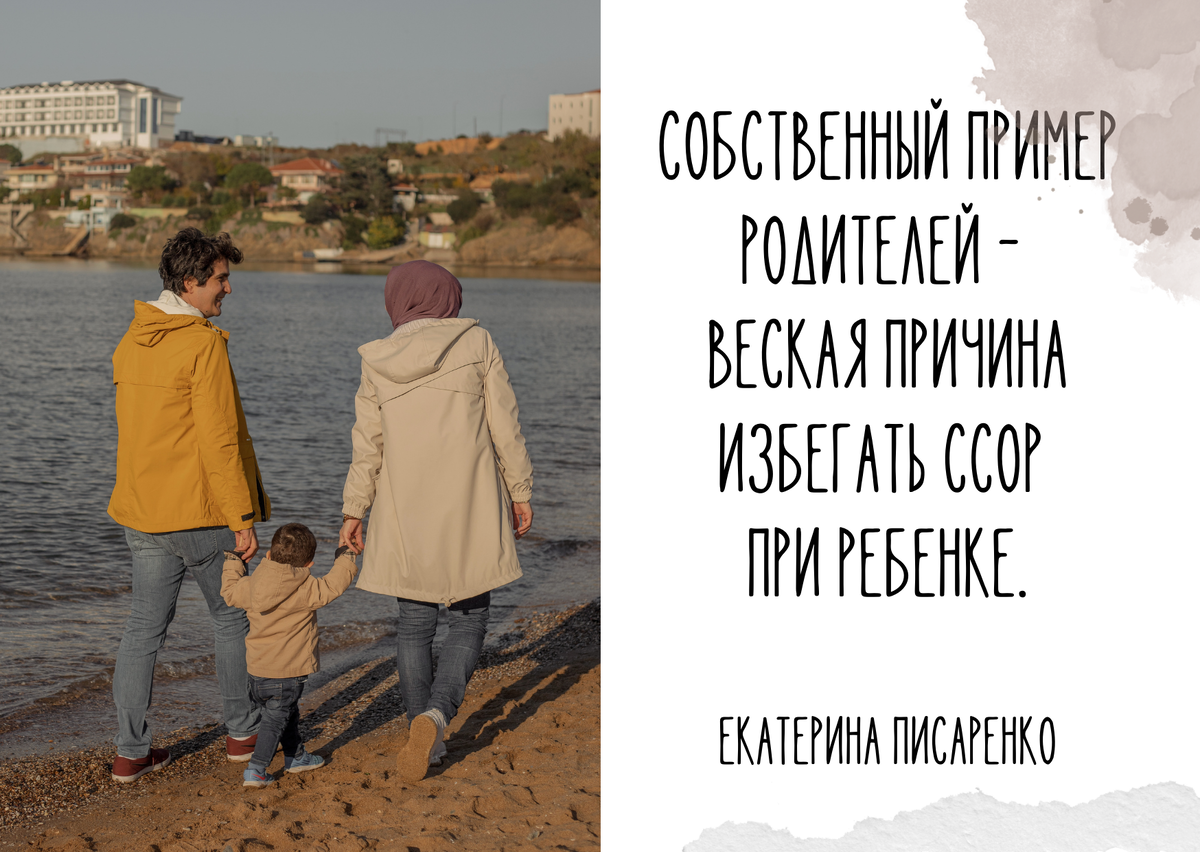 Родители для ребенка - эталон для подражания. Готовности понять и услышать другого, посочувствовать, поддержать - этому ребенок не научится из хороших книжек и мультфильмов. Уважительное отношение друг к другу и проявление любви он должен видеть в жизни. От кого он может перенять важные социальные навыки если не от родителей? То, что ребенок регулярно наблюдает в семье, такая «форма общения» для него становится нормой. Видя постоянные ссоры, конструктивных инструментов для создания теплых семейных отношений он просто не узнает.