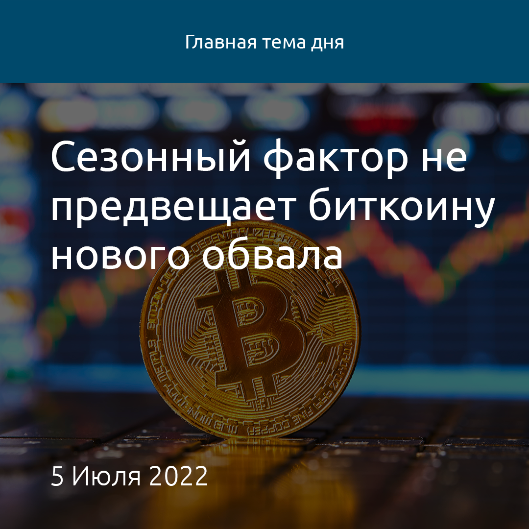 В июне, который оказался одним из худших для биткоина, курс упал в цене более чем на 40%, сильно отставая от исторических трендов. Новый месяц и квартал главная цифровая валюта начала с негатива, лишившись почти 3,5% первого июля. С конца прошлой недели котировки пошли в рост и робко расположились над уровнем $20 тыс. Похоже, сейчас наблюдаются попытки создать видимость покупок на спаде, чтобы с новой силой отправить цены вниз – вероятность стабилизации и существенного восстановления BTC на данном этапе по-прежнему крайне мала. Если обратиться к фактору сезонности, июль считается относительно удачным для биткоина. За последние 11 лет монета завершала месяц ростом семь раз и, соответственно, закрывалась в минусе четыре раза. Средний прирост превышал 20%, а средне падение – порядка 9%. Так, в первом случае BTC может закрыться в районе $23 тыс., а во втором – на уровне $17 тыс. До конца года в Deutsche Bank прогнозируют восстановление до $28 тыс., ссылаясь на потенциальное ралл