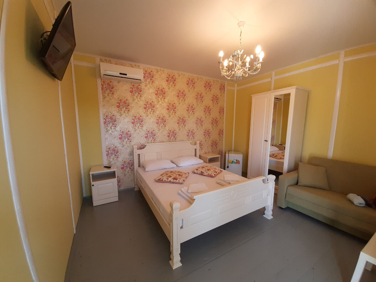 Вся правда о гостевом доме «Фатима» в Пицунде Я начала бронировать по интернету гостевой домик Сан-Лора. Увидев, что могут взиматься дополнительные сборы, позвонила хозяйке. (Без брони номер не высвечивается.) Хозяйка Фатима оказалась добрейшим человеком. «Какие еще доп сборы, отмените вы эту бронь. Я вам дам комнату на выбор в любой моей гостинице» - сказала она и не обманула. Мы так и сделали. Оплату вносили наличными после заселения. Нас уже ждали тут, как долгожданных гостей. В отеле мы были одни. Встретила и заселила горничная Настя, веселая, приятная девушка. После бюджетного гостевого дома здесь нам казалось 5-зведочным отелем… Белое постельное белье, белые полотенца для душа и для рук, новая сантехника. Красивые шторы. Номер чистый, красиво убранный. В номере двуспальная кровать и мини-диванчик. Кровать красивая, белая; матрас мягкий, удобный, подушек много. В номере 2 прикроватные тумбы, кондиционер, фен, холодильник, телевизор, столик, шкаф с большим зеркалом. Шкаф из двух от