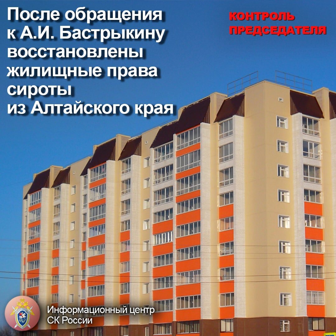 После обращения к А.И. Бастрыкину восстановлены жилищные права сироты из Алтайского края