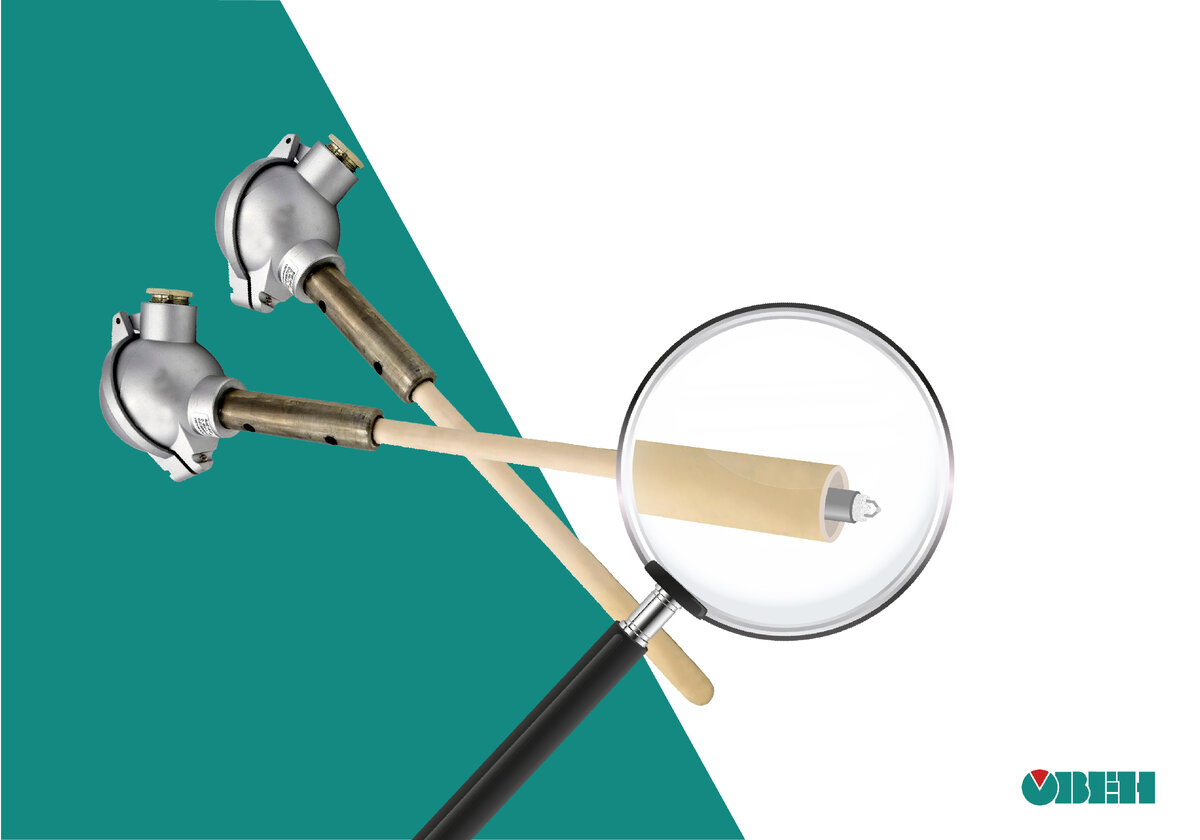 При измерении высоких температур – свыше 1000 °С – чувствительный элемент термопары желательно изолировать от раскаленных печных газов. Для этого служат разнообразные чехлы. Они увеличивают срок службы термопары, и благодаря им датчики дольше сохраняют точность измерения. Компания ОВЕН выпускает термопреобразователи для высоких температур в защитных чехлах из жаростойких сталей и сплавов, а также керамики. О датчиках в металлических чехлах, их плюсах и минусах мы писали тут. В этой статье разберем (в прямом и переносном смысле) термопреобразователи в защитных чехлах из керамики. Обычный конструктив этих датчиков такой: Белая часть – керамический чехол, ближе к головке – металлическая часть из нержавеющей стали, далее располагается алюминиевая головка с клеммами для подключения удлинительных проводов. Керамическая часть погружается в топку печи или в газоход – то есть непосредственно контактирует с измеряемой средой. Керамическая и металлическая часть вместе составляют защитную арматуру