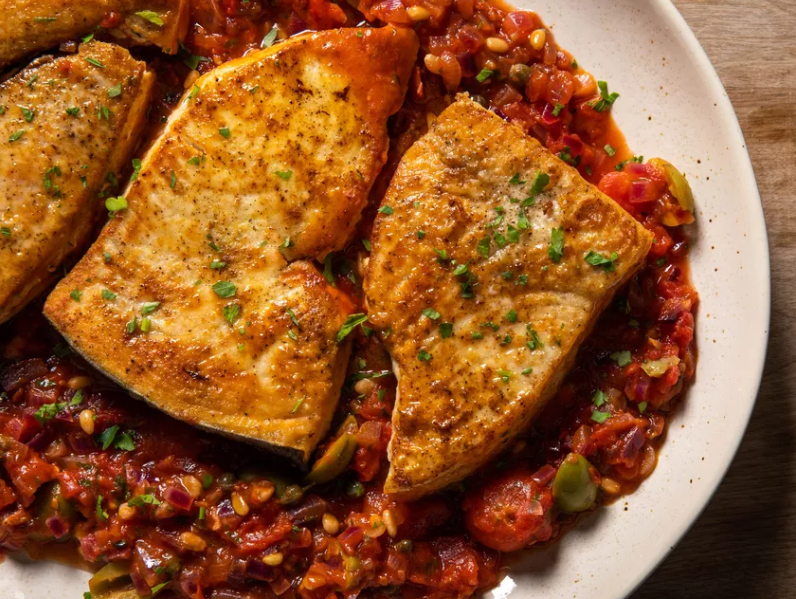 Приготовление 1. Посолите и поперчите рыбу-меч со всех сторон. На тарелку ровным слоем выложите муку. Обрабатывая по одному куску, обваляйте стейки из рыбы-меч со всех сторон, стряхните излишки муки, затем переложите на блюдо. 2. В большой 30-ти сантиметровой сковороде или сотейнике из нержавеющей стали разогрейте 2 столовые ложки (30 мл) масла на средне-сильном огне до образования румяной корочки.При необходимости добавляйте стейки из рыбы-меч порциями и готовьте, пока они не подрумянятся с первой стороны, около 5 минут. Переверните стейки из рыбы-меч и готовьте, пока термометр мгновенного считывания, вставленный в центр, не покажет 130 ° F (54 ° C) для средней прожарки, 135 ° F (57 ° C) для средней прожарки или от 140 до 145 ° F (60-63 ° C) для хорошей прожарки, около 2 минут.минут (время приготовления зависит от толщины стейков из рыбы-меч; обратите внимание, что важно получить хороший цвет по край