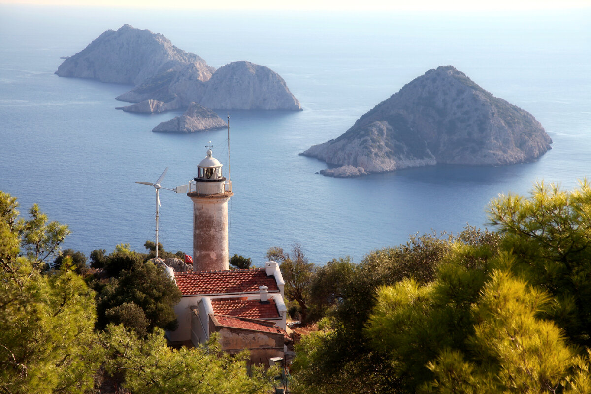 - С маяка открывается живописный вид на архипелаг Beş Adalar из 5 островов, расположенных рядом с мысом Гелидония. Если присмотреться, на самом большом острове можно увидеть неизвестные круги