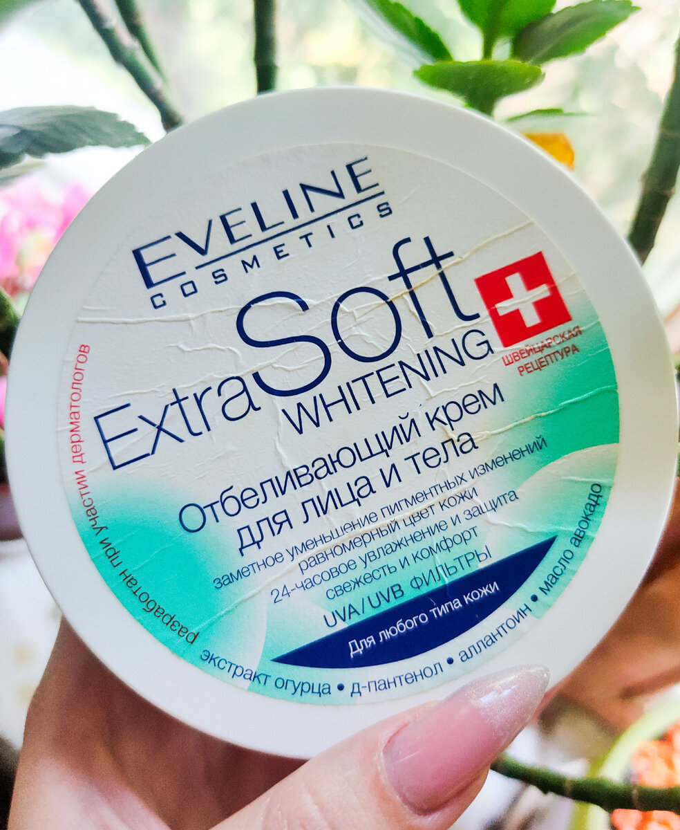 Первый продукт о котором я хочу рассказать, это крем. Крем для лица и тела. Представители на упаковке заявляют, что крем отбеливает, увлажняет на 24 часа и выравнивает тон кожи. Как вы могли заметить по упаковке я сама использую данный товар, поэтому могу оставить честный отзыв. Средство действительно увлажняет, но не на сутки, даже не на 12 часов. Крем прекрасно справиться с задачей если использовать его два-три раза в день. Крем не отбеливает, но тон кожи выравнивает. Меня в первую очередь интересовало увлажнение, которое я получила благодаря компанентом в составе: экстракт огурца, пантенол, глецирин и прочее. Сам продукт я покупала за 204 рубля на маркетплейсе. Оценка 7 из 10. (Для очень сухой кожи не подойдёт). Следующий продукт не менее бюджетный и не менее плохой. Это сыворотка от Eveline cosmetics, тот же бренд, что и у крема. Тут нам говорят о том, что сыворотка придает сияние кожи и разглаживает. Сияние у нас за счёт мелких блёсток в сыворотке, а так, этот факт не рабочий. С