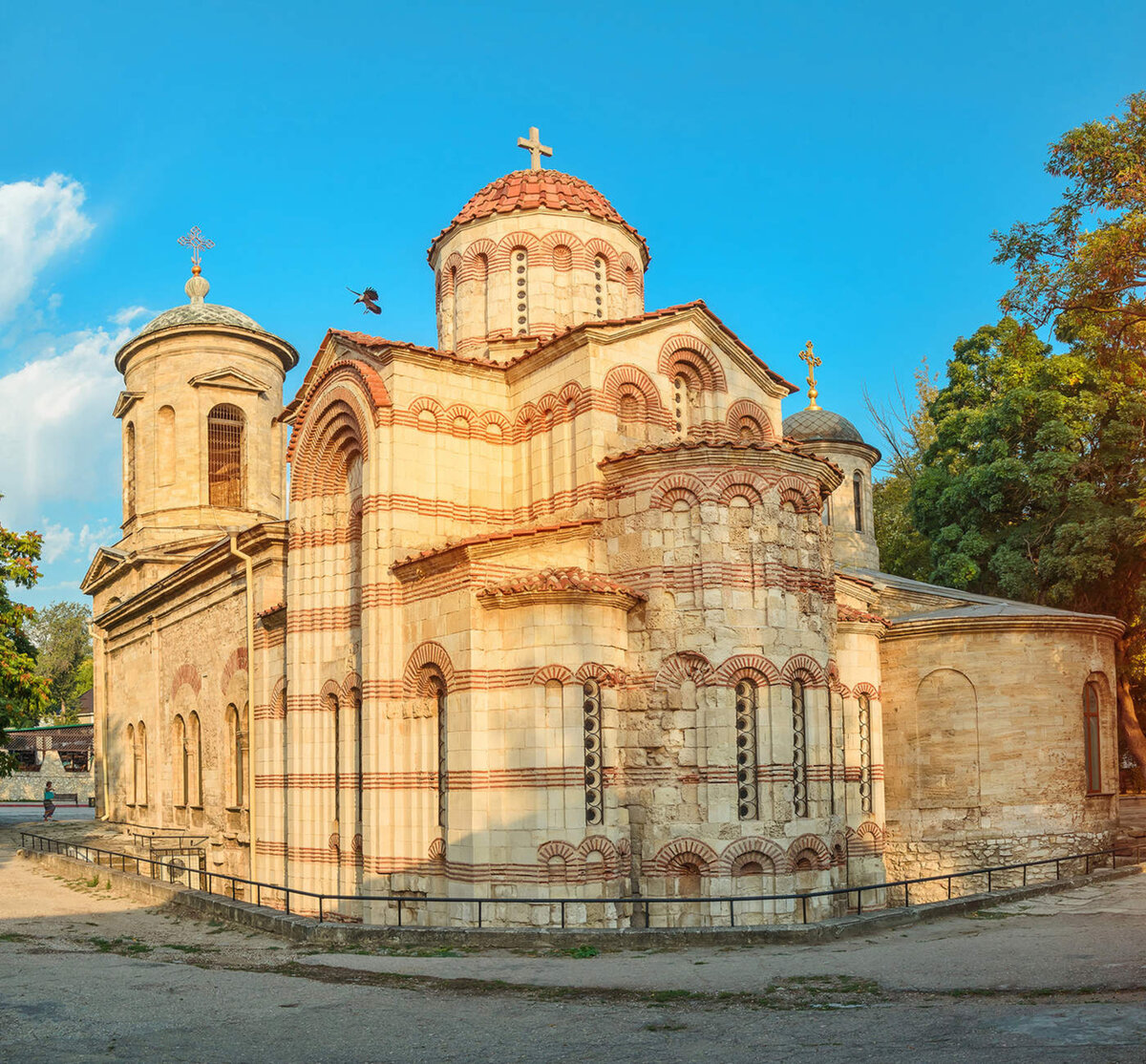 Мы продолжаем исследовать Керчь по путеводителю Григория Москвича. В это части подробно останавливаемся на достопримечательностях. Иоанно-Предтеченская церковь принадлежит к числу древних исторических памятников Керчи христианской эпохи и сооружена в 717 г. В начале XIX века церковь была удлинена пристройкой с западной стороны, так как старинная часть ея очень мала. Церковь ниже уровня земли и потому для входа в нее устроена лестница в 8 ступеней. Внутри древняго храма тяжелый свод поддерживается 4 темносерыми колоннами с красивыми капителями коринфскаго стиля. Иконы — Спасителя и Богоматери — замечательны своей древностью и весьма старинной живописью, но наибольшей древностью отличается храмовая икона св. Иоанна Предтечи, поставленная в особом киоте у правой стороны солеи. Из древних предметов достойны внимания — деревянная чаша, относимая к VI веку, с едва заметными изображениями Спасителя, Богоматери, св. Иоанна Предтечи и Распятия, две серебряныя чаши — одна XVI — XVII века, а дру