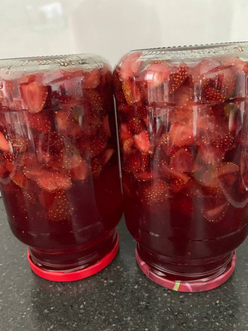 Ароматное варенье, пахнущее солнцем и теплом Ингредиенты: клубники, сахара, лимонной кислоты Способ приготовления: Ягоды моем, просушиваем на бумажном полотенце, затем убираем с неё листики. Если ягоды не ровные, разрезаем их на ровные дольки, засыпаем сахаром и оставляем на некоторое время, чтобы ягода дала сок и растворился сахар. Варим варенье в несколько приёмов: кипятить надо по 5-10 минут, с интервалом в 10-15 минут 3-4 раза, снимая пену. Готовое варенье разливаем в тёплые стерилизованные банки (я кладу сухие банки в холодную духовку и стерилизую 15-20 минут при температуре 90 градусов), в каждую банку с вареньем сверху добавляем на кончике ножа лимонную кислоту,закручиваем горячими крышками и переворачиваем вверх дном до полного остывания. Приятного чаепития!