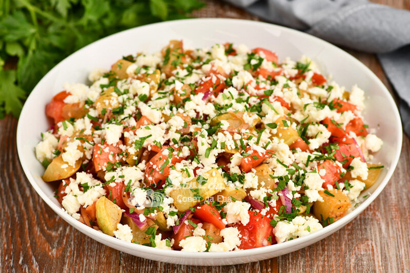 Покажу, как просто приготовить вкуснейшие кабачки, которые прекрасно подходят и на гарнир, и для создания салатов. Кабачки получаются сочными и невероятно ароматными, все дело в соусе. Сегодня будет один из вариантов приготовления салата с такими запеченными кабачками. Потребуется еще помидор, лук и немного брынзы. Минимум овощей, но вкус у салата отличный. Он сочный и очень ароматный. Порции 5 Время подготовки 55 минут Время приготовления 10 минут Ингредиенты Для салата: Для соуса: Инструкции 1. В миску добавляем соль, сахар, измельченный чеснок, горчицу и специи (у меня для цвета сладкая паприка ½ ч. л. и для остроты смесь перцев ½ ч. л.). Специи можно брать любые по вкусу. 2. Вливаем сок лимона, масло и хорошо перемешиваем. Для запекания использую подсолнечное рафинированное масло. 3. Кабачки нарезаем кубиками и поливаем соусом. Делаем это в форме. 4. Перемешиваем и запекаем в духовке, предварительно разогретой до 180 градусов, 35 минут. В процессе запекания 2 раза вынимаем и переме