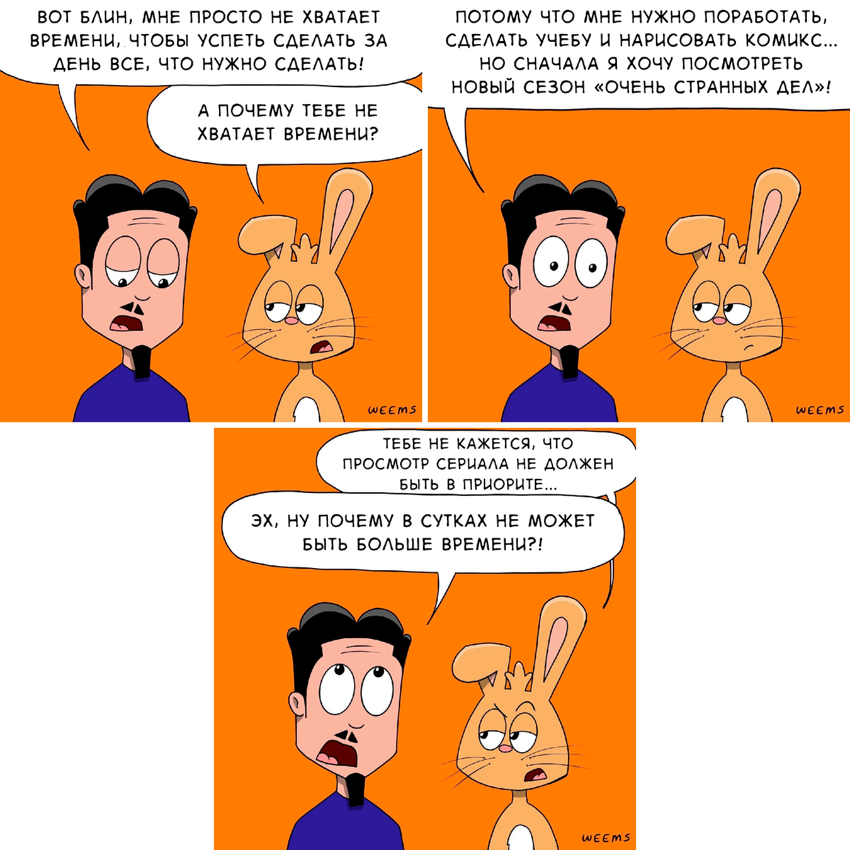 27 мая 2022 года на Netflix состоялась долгожданная премьера четвертого сезона «Очень странных дел» - фантастического сериала о монстрах, появившихся в небольшом американском городке под названием Хоукинс. На этот раз сезон был поделен на две части - две финальные серии вышли не так давно - 1 июля 2022 года. Думаю, что поклонники проекта братьев Даффер уже успели посмотреть новый сезон любимого шоу, так что предлагаю немного обсудить его в комментариях, а также посмеяться над шутками художников комиксов на эту тему. Каких-то больших сюжетных спойлеров в сегодняшней подборке не будет, но если вы еще не посмотрели 4 сезон полностью, думаю, что вам лучше прекратить чтение прямо сейчас - как минимум часть шуток вы просто не сможете оценить. Ну а всем остальным - приятного чтения! Думаю, что многим знаком тот момент, когда выходит новый сезон любимого сериала и его очень хочется посмотреть, но дела так просто не отпускают. Комикс от художника по имени Уилл Мерфи (Will Murphy) как раз на эту