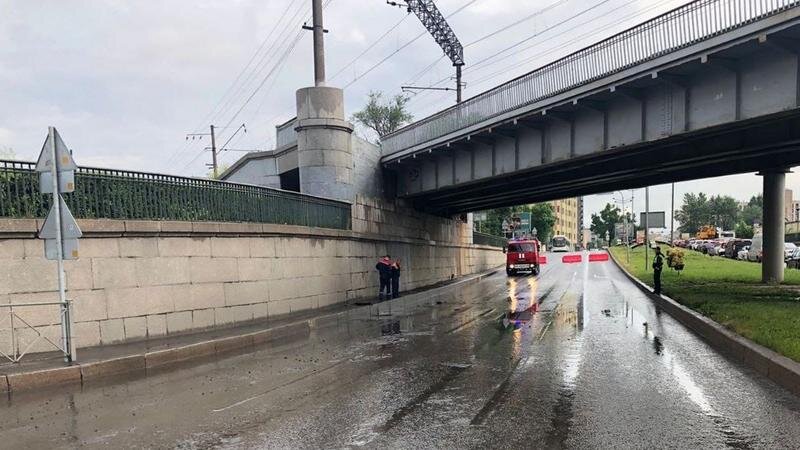 Несколько авто опрокинулись на мокрой дороге. Фото: ГУП "Водоканал Санкт-Петербурга" Всю ночь в Петербурге шли проливные дожди, переходящие в грозы, а утро началось с многочисленных ДТП и «тонущих» машин. Так, на Лиговском проспекте образовалось целое озеро, по которому в спешке пытались «проплыть» автомобили. В то же время на Вантовом мосту на бок опрокинулся большегруз, не устоявший на мокрой дороге. Видео: vk.com/spb_today ДТП произошло и на проспекте Испытателей, где каршеринг не справился с управлением и протаранил забор. Ранее 78.ru сообщал, что после 13 сухих дней в Петербурге выпало почти 16 мм осадков.