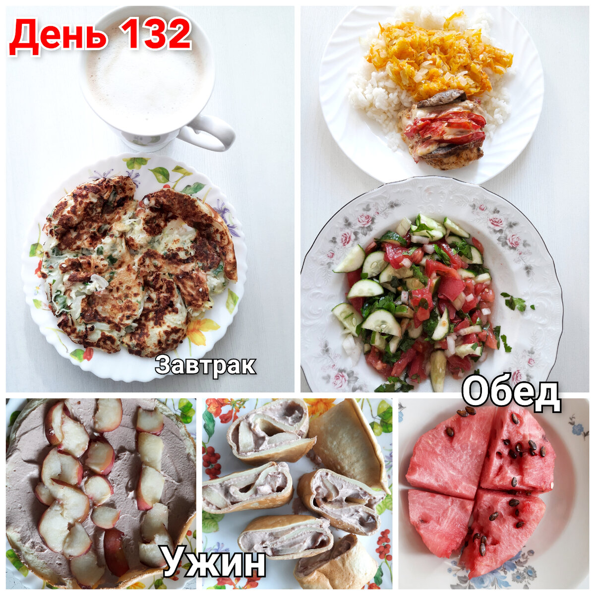 #Завтрак – кофе без кофеина со сливками и сахзамом. #Сырная #лепешка с кабачком. 1 яйцо+30г муки+60г натертого и отжатого кабачка (заготовка, заранее в комбайне блендера потерла #кабачок)+соль+40г тертого сыра+петрушка+20г обычного лука+25г кефира+20г карпаччо из курицы (магазинское, с хорошим составом). Все смешать, на сковороду без масла, с каждой стороны до румяной корочки. Петрушка тут была лишняя, с ней мне что-то не понравилось… #Обед – отварной пропаренный рис, филе с помидорами в духовке (рецепт в дне 131), #зажарка из кабачка, моркови, лука и подсолнечного масла (описание в дне 127, там такой вариант с гречкой). Салат из помидора, огурца, лука и петрушки, заправлен маслом грецкого ореха с Айхерб (код на скидкуFHZ852). #Десерт – арбуз. #Ужин – пока я доедаю свои остатки сахзама – это идеальный вариант ужина – #рулет с творогом и фруктами. 2 яйца взбиваю блендером до светлого цвета, добавляю 25г муки и еще хорошо взбиваю. Сахзам не добавляла и соль тоже не добавляла. На сковород
