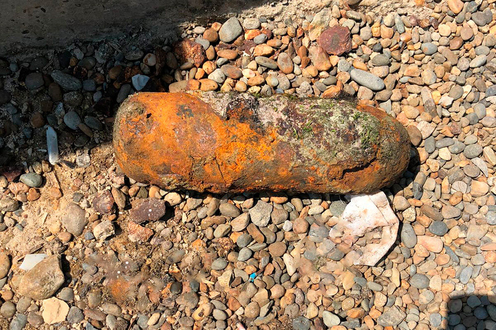 Сотрудники инженерно-технического отделения ОМОН «Пластун» Главного управления Росгвардии по Краснодарскому краю обследовали находку и установили, что это осколочная авиационная бомба весом 2,5 кг со следами коррозии периода войны.
