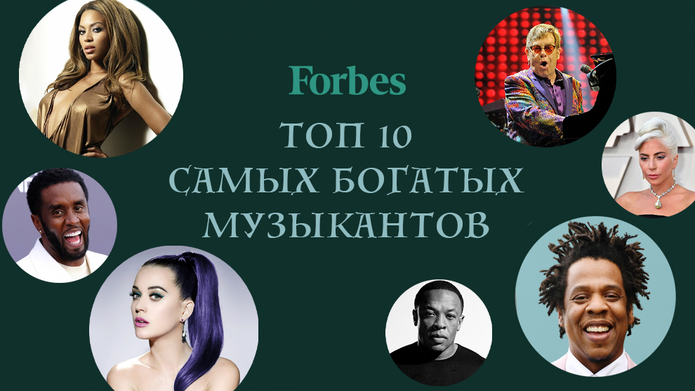 В список не входят агенты, менеджеры и промоутеры артистов, а также не вычитываются расходы на проживание или налоги. Forbes ежегодно оценивает лучших музыкантов отрасли для Celebrity 100, просматривая данные гастролей от Pollstar, цифры потребления музыки от Nielsen и интервью с менеджерами, агентами и с самими звездами. Forbes оценивает состояние только живых артистов. Если брать во внимание и посмертные доходы, то Майкл Джексон был бы № 1 в списке. Его состояние оценивается в 2,37 миллиарда долларов за десятилетие. Он превосходит всех своих живых сверстников. А так выглядит список десяти самых богатых артистов десятилетия: 1. Доктор Дре (950 миллионов долларов)