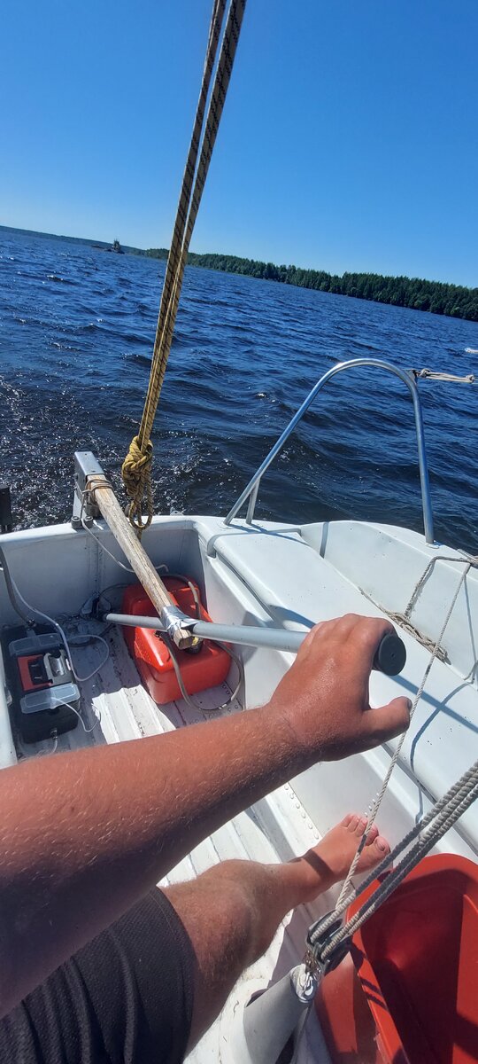 Хитрый капитан с помощью багра и скотча соорудил удлинитель руля и скрыл таки, свой бесценный мозг от солнечной радиации. Так мы и моторили по очереди) и в итоге к 14 00 домоторили до Костромы) И дальше день переходит из обычного в прекрасный))) Во-первых, вчера я созвонился с яхт клубом Вёсла, и на вопрос о цене, мне был задан интересный вопрос: А вы откуда и куда идете? Я ответил: из Казани в Москву на паруснике. И услышал потрясающий ответ: ПУТЕШЕСТВЕННИКИ у нас первый день стоят бесплатно! А дальше сколько не жалко заплатите)) Ну не здорово ли? Итак, сперва обзорная экскурсия "Кострома с воды", и в 14 20 пришли в Весла. Познакомились с Алексеем, руководителем клуба, он дал рекомендации по ресторанам, и такси и прочим мелочам. Условия для путешествеников подтвердил. И ушел заниматься делами. Там у них скорее не клуб, а судоверфь, уже спущен на воду катер на солнечных панелях, спущен интересный колесный пароходик, а сейчас на стапелях в работе гигантская яхта, точнее ее цельно а