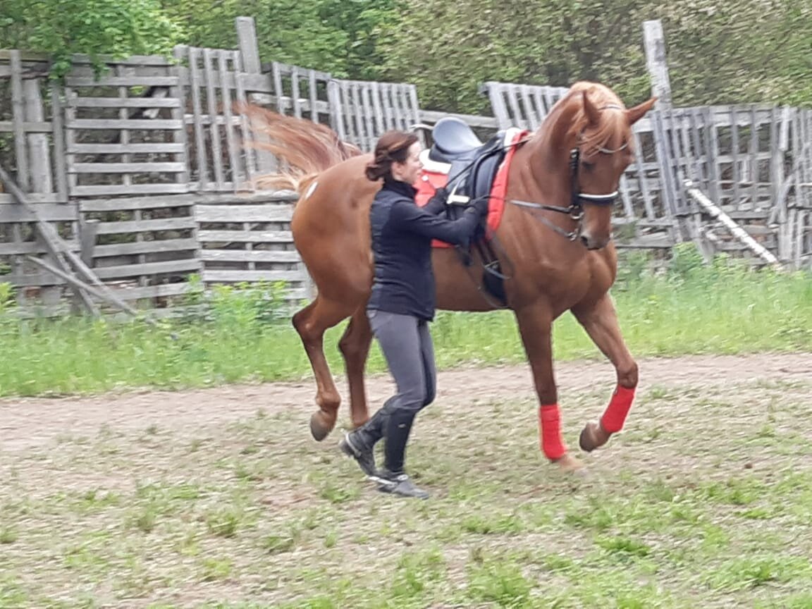 Далее стоит обучить лошадь движению с постановлениями вы разные стороны, а также боковым сгибаниям на шагу, например посредством исполнения упражнения плечо внутрь в 3 и в 4 следа, а также упражнения плечо вперёд. Можно пробовать повороты на передних ногах, а в последствии уступку, также полезна будет работа по вольтам с откидыванием зада. Завершающим этапом будет весь третий этап на рыси. Предварительно, конечно, вы должны научить лошадь подниматься в рысь и переходить в шаг незамедлительно но плавно. Обязательно лошадь должна хорошо понимать одержки и действия хлыста. Помните, что при работе в руках повод - это по прежнему повод, но шенкель - это хлыст (причем только с одной стороны!) и голос. Так что предстоит действительно хорошо подготовить лошадь к такой работе. Работа в руках во многом облегчает работу верхом, ведь вы видите все совершенно точно сами и реакции лощади, и то, как она выполняет элемент. Конечно, то, что здесь описано, это лишь верхушка айсберга, тк работа в руках э