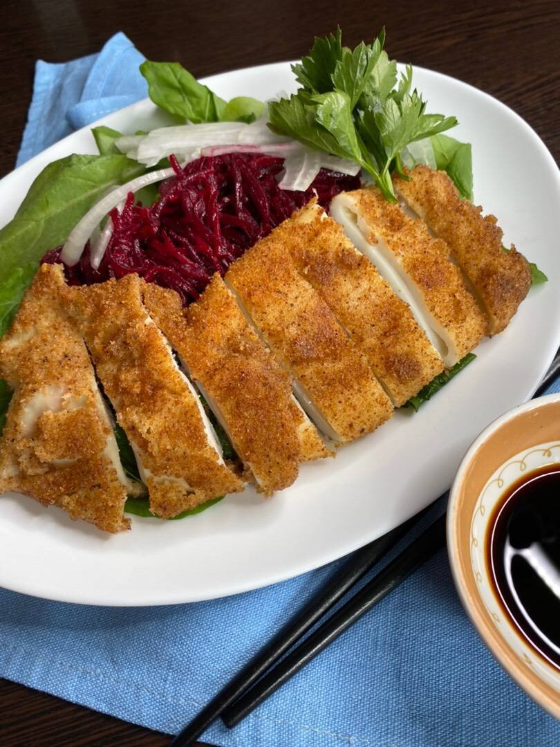 Жареный кальмар в панировочных сухарях с салатом из свёклы по-корейски 🥢