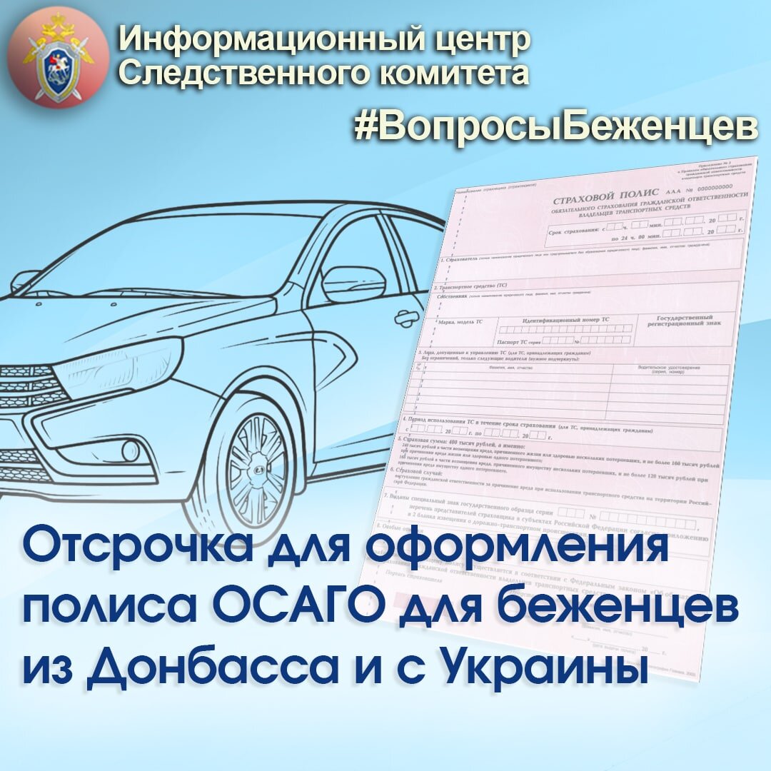 #ВопросыБеженцев - Отсрочка для оформления полиса ОСАГО для беженцев из Донбасса и с Украины