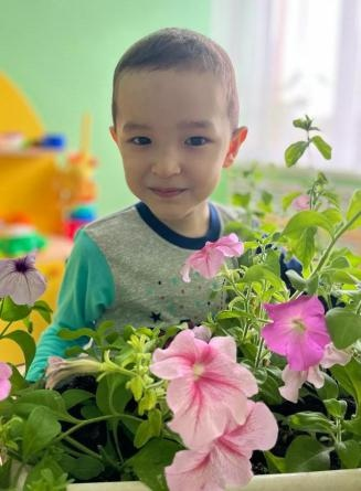 Мальчик активный, подвижный, ласковый и добрый. Любит катать машинку, кататься на велосипеде, играть со строительным материалом (строит большой и высокий дом), заниматься в сенсорной комнате. Красиво и выразительно рассказывает стихи и поет песни. Любит рассматривать книжки и слушать, когда читают, любимая книга "Гуси-лебеди"