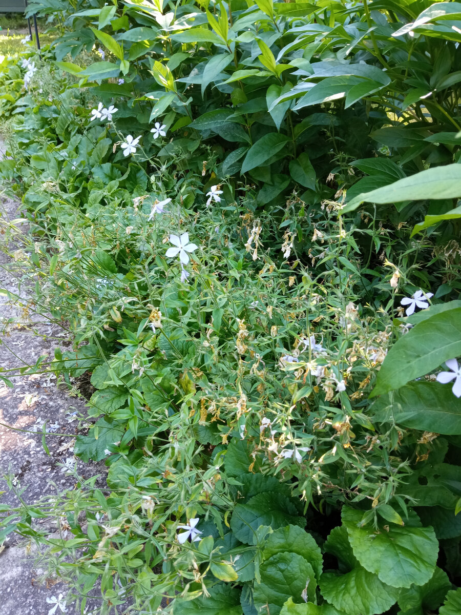 Обычно флокс растопыренный заканчивает цветение в середине июня, но в этом году сроки из-за холодного мая сдвинулись, и он отцвёл позже, в конце июня. Для того, чтобы флокс оставался здоровым и хорошо цвёл на следующий год, необходимо соблюдать несложную агротехнику. Основное - это обрезка цветоносов, полив и подкормка. Удаление цветоносов. Для чего это нужно? Во-первых, для сохранения эстетичного вида растения. Высокие цветоносы с засохшими цветами смотрятся неряшливо. Кроме того, они постепенно начнут желтеть, что добавит неприглядности цветнику. Во-вторых, для сохранения здоровья растения. Флокс растопыренный, так же как и его родственник флокс метельчатый, склонен к заболеванию мучнистой росой. Чтобы этого не допустить, необходимо избегать загущения посадок и создавать возможность их проветривания. Это особенно актуально для тех случаев, когда флокс посажен не отдельными кустиками, а сплошным массивом в качестве почвопокровника. Удаление цветоносов необходимо и в том случае, ко