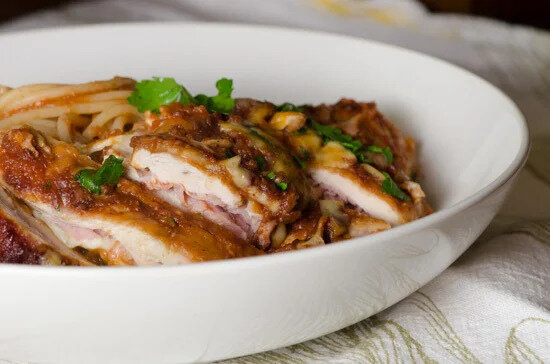 Куриные грудки делим пополам, отбиваем, выкладываем на противень, смазанный маслом.