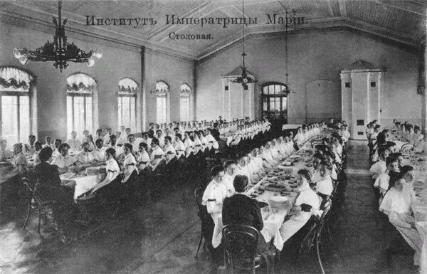 Софья Хвощинская подробно описала в мемуарах. Девочки уже в 6 лет должны были уезжать из родительского дома на 12 лет обучения без каникул, на которых они могли бы повидаться с семьей. Родители даже подписывали документ, в котором говорится что они не потребуют обратно свою дочь и могли ее видеть только по редким приемным дням и то под надзором. Именно Императрица Екатерина задумала чтобы воспитать новую породу русских женщин, а ограждали от «старой породы». Просыпаетесь в холодной комнате в 6 утра. Тонкие шерстяные одеяла и жесткие кровати, дополнительное одеяло давалось только по назначению врача. Суп с крупой, костлявая рыба, постные пирожки, каша размазня и пару картошек. Бывали времена, когда почти большая часть девочек попадали в лазарет с диагнозом истощение. Уроки. На уроках чаще ничего не делали, образование давали на поверхности ведь они будущие фрейлины. А задачки их были по типу «в комнату вошел юноша ваши действия?». При Екатерине институтке их спокойно выгуливать, а после