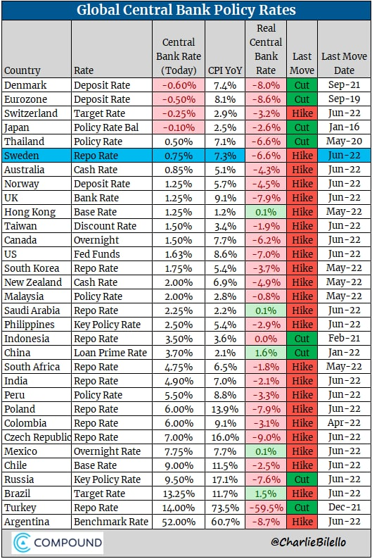 До недавнего времени власти любили сравнивать свои достижения с достижениями стран Запада. В таблице выше показаны реальные ставки денежного рынка (т.е. с учетом инфляции) в разбивках по странам. И это вновь повод заявить о Европейских темпах роста как было раньше или Западных ставках денежного рынка. Реальная ставка в Еврозоне -8,6%, США -7%, в РФ -7,6%. Это значит, что храня свои сбережения в деньгах, каждый год их покупательская способность тает примерно на сопоставимую сумму.
