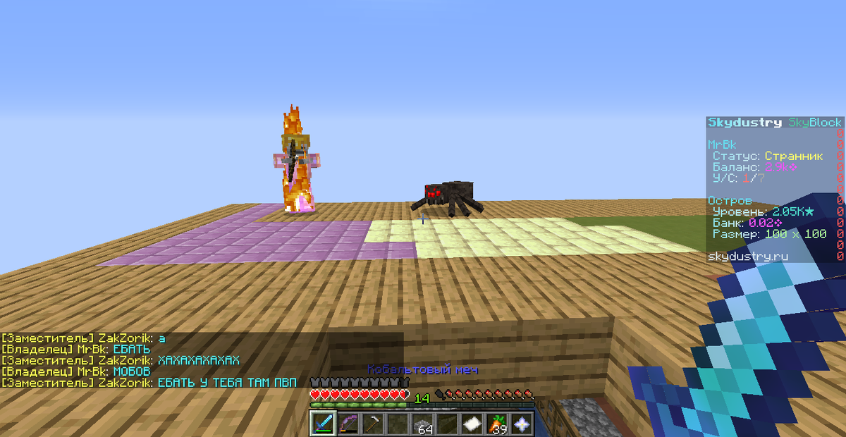 Мы опять собрались идти в боевую зону, ибо кроме как неё вещи негде брать. В целом, не думаю, что этот скайблок когда либо станет популярным, ибо скучно, не вкладывается душа, донат без баланса с обычными игроками и всякое такое. Ну, лично мне уже надоело, поэтому я пишу эту статью не находясь в игре)) Ахах, ещё и помощники умничают и придираются к любому слову, из за чего чат становится местом сборище неадекватности. Кого то не мутят ибо друг и т.д., в общем, такое себе.